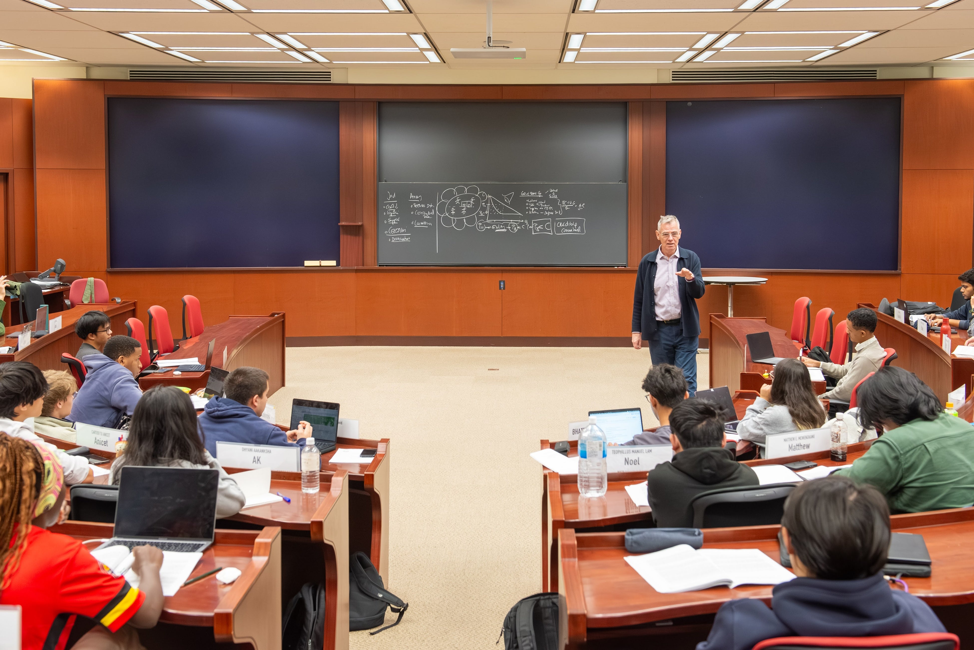 今回の授業は、経営管理課程(Global BBA)に所属する学生を対象に実施され、授業は英語によるケースメソッドを用いたディスカッション形式で行われました。学生たちは実際の企業や産業を題材にしたケースをもとに、グループディスカッションやクラス全体での議論を通じて、理論を実務に応用する力を養いました。