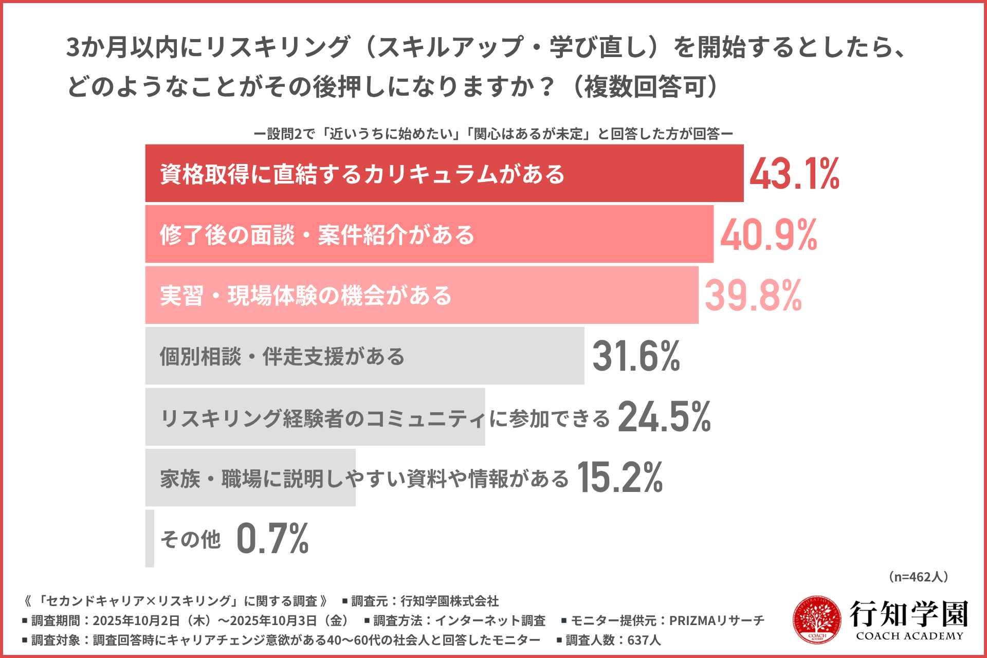 そこで今回、行知学園株式会社(https://careerup.coach-j-teacher.jp/)は、キャリアチェンジ意欲がある40~60代の社会人を対象に、「セカンドキャリア×リスキリング」に関する調査を実施しました。
