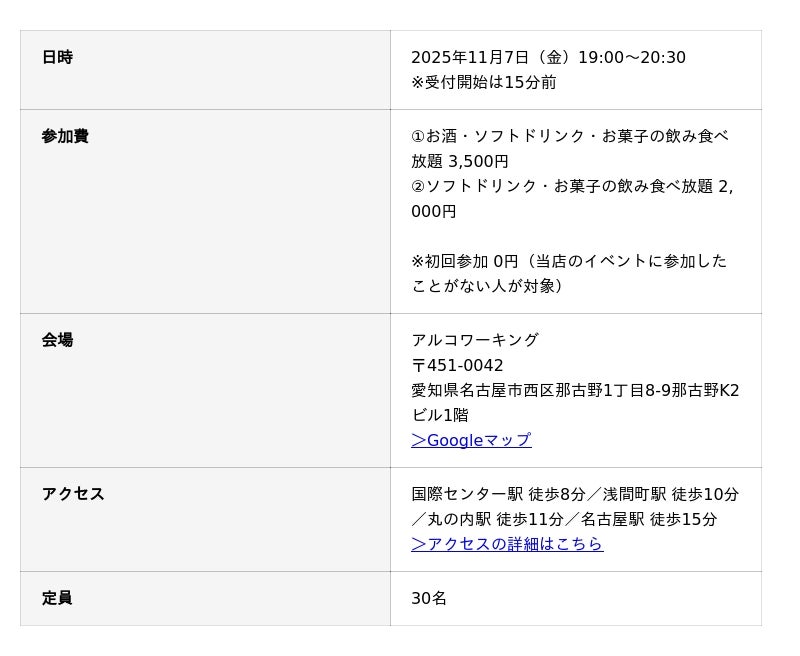 当イベントは、愛知県名古屋市のお酒飲み放題コワーキングスペース「アルコワーキング」が主催しています。