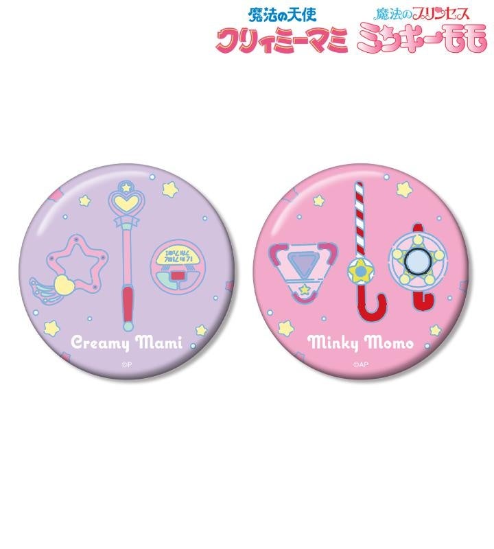 クリィミーマミ、ミンキーモモの変身アイテムのモチーフを缶バッジ2個セットに仕上げました。