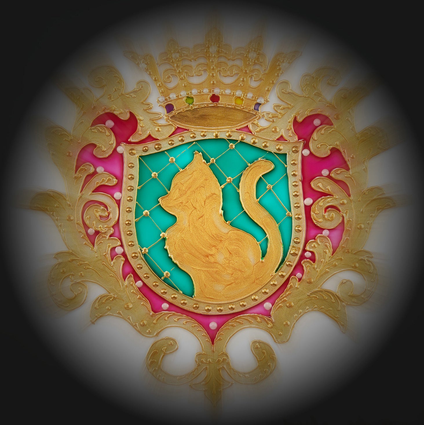 『ネコのトランプ缶2』の底面にデザインされているエンブレムのガラス絵