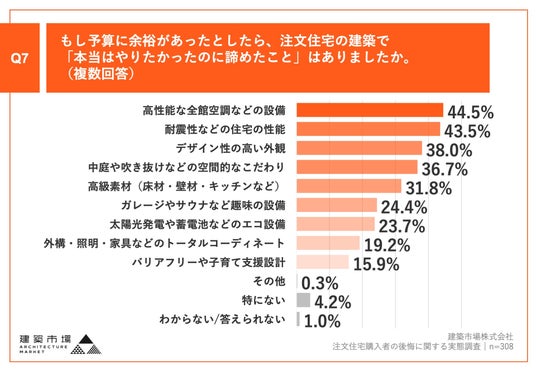Q7.もし予算に余裕があったとしたら、注文住宅の建築で「本当はやりたかったのに諦めたこと」はありましたか。(複数回答)