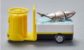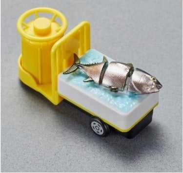 第1弾の新鮮な“いか”を運ぶトラックに続く第2弾は、氷を入れた発泡スチロールケースに“まぐろ”を乗せ、市場を走る運搬車『ターレー(ぴちぴち動くまぐろ)』が登場します。ターレーの車輪が動くと、活きが良い“まぐろ”がぴちぴちと上下に躍動する、遊び心を込めたギミックで、新鮮なお魚を急いで運ぶターレーの姿を表現しました。
