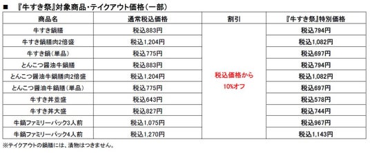 株式会社吉野家(本社:東京都中央区、代表取締役社長:成瀬哲也)は、2025年11月6日(木)11時から11月25日(火)15時までの期間、全国の吉野家店舗※1で『牛すき祭』を開催します。期間中は、冬季限定の人気商品「牛すき鍋膳」をはじめ、「牛すき丼」など対象商品を税込価格から10%オフでお楽しみいただけます。また今年は、グループブランド「ばり嗎」との初コラボ商品「とんこつ醤油牛鍋膳」も販売しています。店内飲食・テイクアウトのどちらでも、寒い季節にぴったりの牛すき商品をお楽しみください。