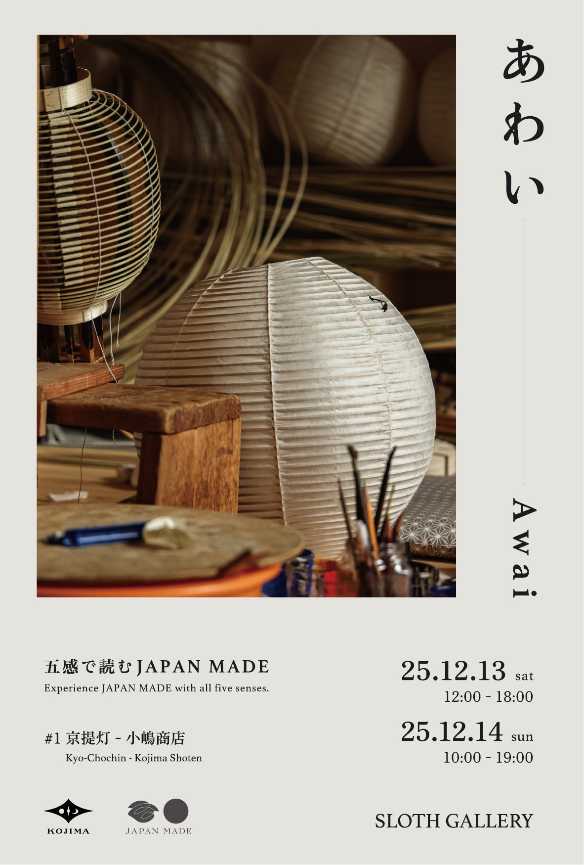 株式会社ひゃくはち(本社:東京都世田谷区、代表:畠山純)が運営する「JAPAN MADE」は、2025年12月13日(土)・14日(日)、京都の老舗提灯工房「小嶋商店」と共に、体験型イベント【Awai - あわい -】を開催します。