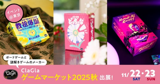 札幌市にあるボードゲーム・謎解きゲームのメーカー ClaGla(株式会社クラグラ)は、2025年11月22日(土)・23日(日)に開催される国内最大規模のアナログゲームイベント「ゲームマーケット2025秋」に出展いたします。