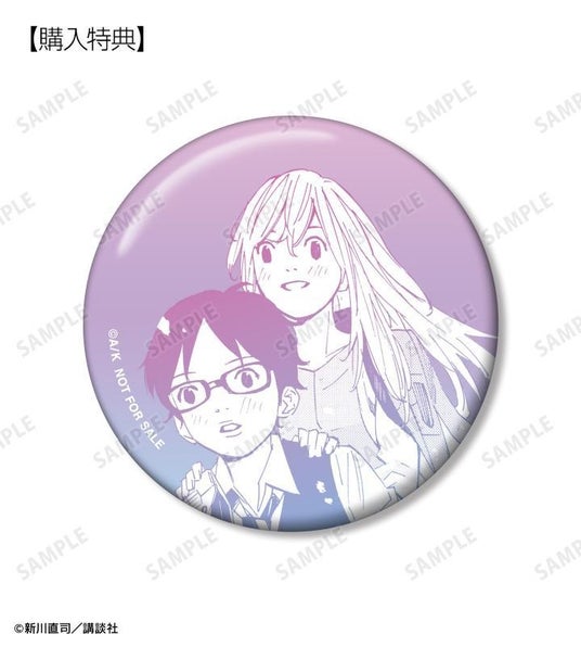 当商品を1BOX、または単品にて1BOX相当数ご注文ごとに、予約購入特典として「有馬公生&宮園かをり 漫画コマ缶バッジ AMNIBUS限定特典」を付属いたします。