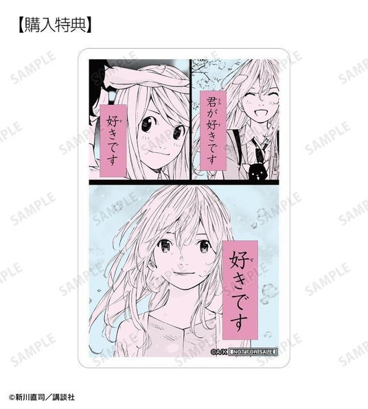 当商品を1BOX、または単品にて1BOX相当数ご注文ごとに、予約購入特典として「有馬公生&宮園かをり トレーディング漫画コマコンパクトクリアカード AMNIBUS限定特典」を付属いたします。
