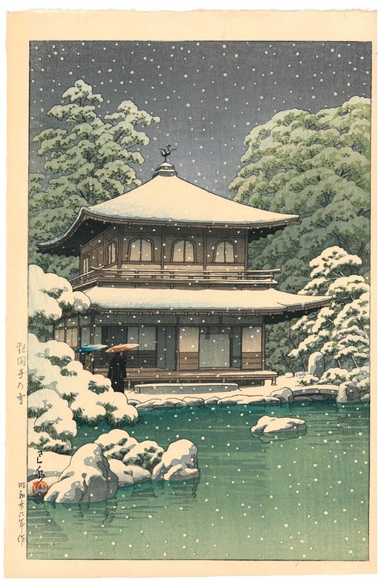 「銀閣寺の雪」 昭和26年(1951)作 (C)S.WATANABE COLOR PRINT CO.