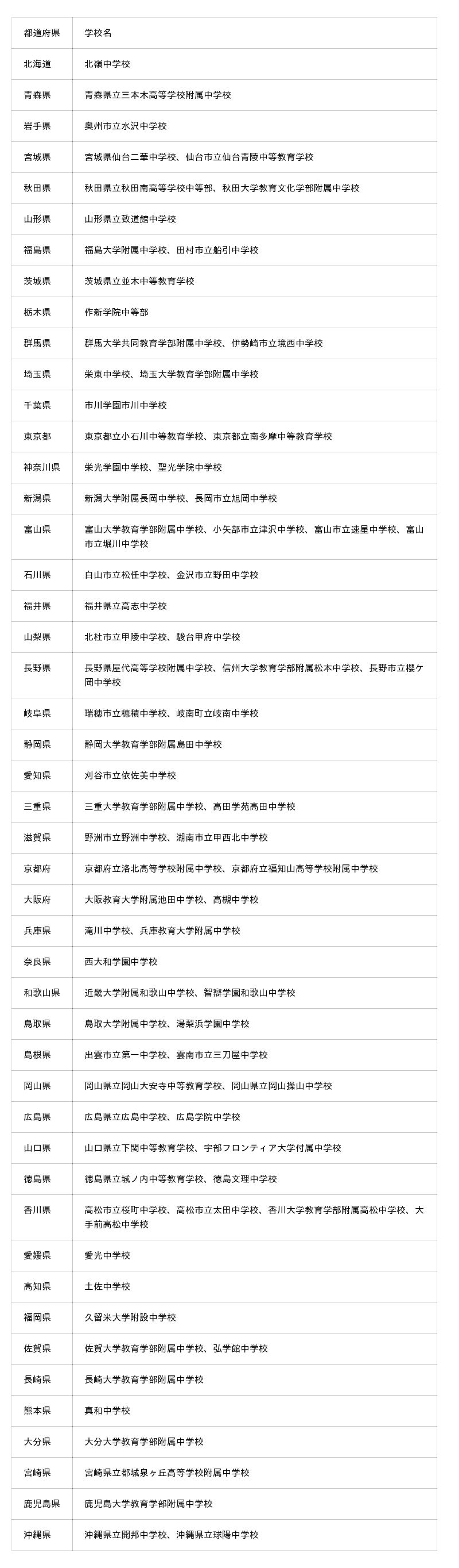 「第13回科学の甲子園ジュニア全国大会」都道府県代表チーム一覧
