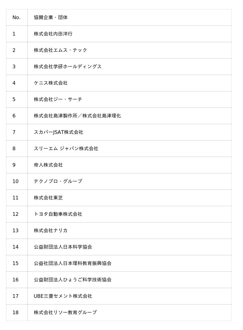 「第13回科学の甲子園ジュニア全国大会」協働パートナー一覧