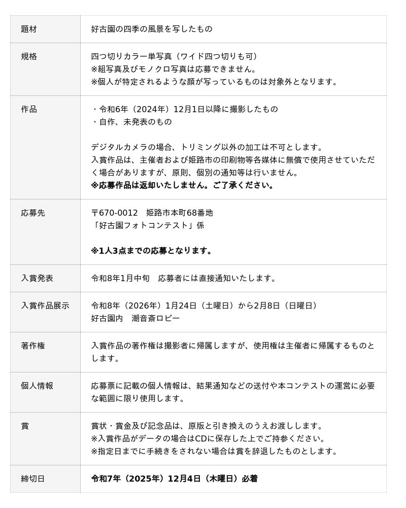 応募要領d73910-368-b204c8bf7d18bf74647c2c812be23589.pdf※応募要領は好古園のホームページからもダウンロードできます。