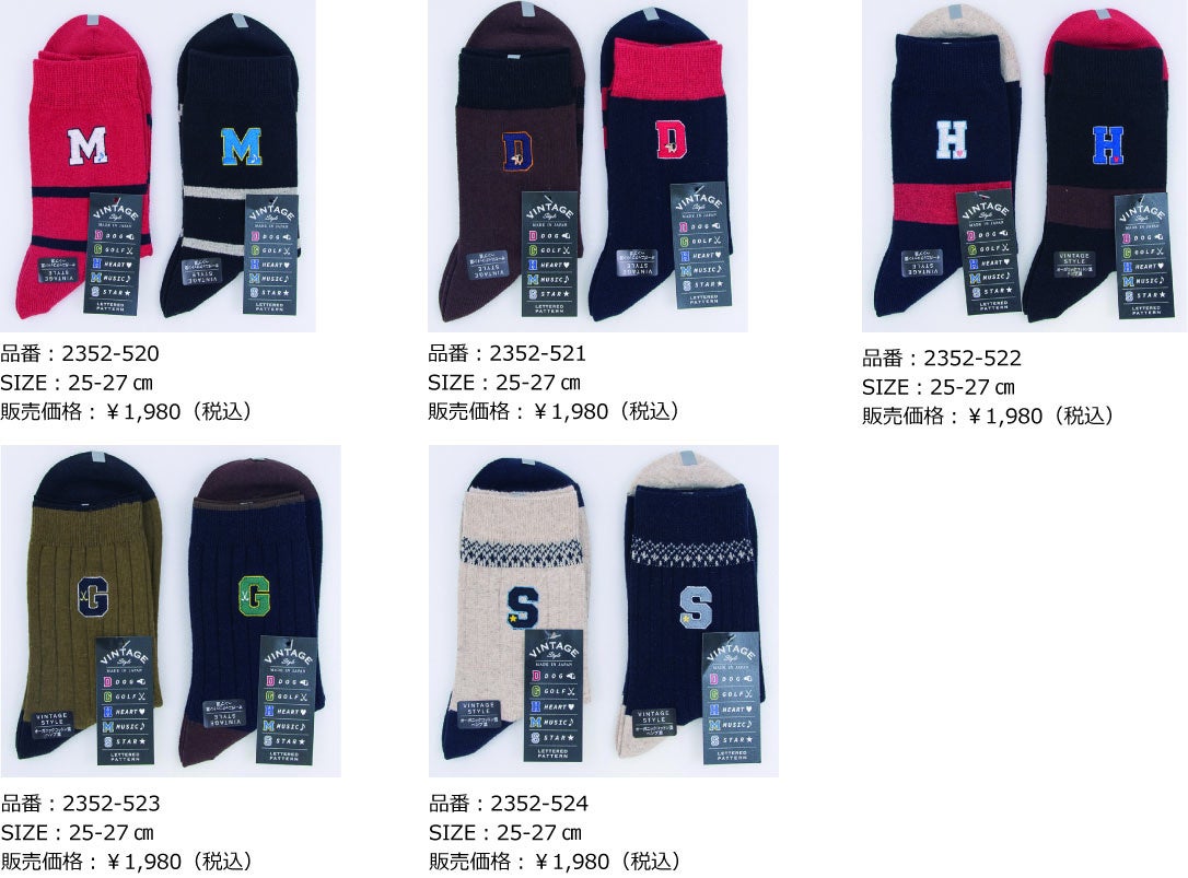 アルファベット刺繍で魅せる、ヴィンテージ感漂うメンズソックス