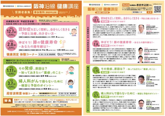阪神電気鉄道株式会社(本社:大阪市福島区、社長:久須 勇介)と学校法人兵庫医科大学(法人本部:西宮市、理事長:太城 力良)は、沿線住民の健康増進による沿線活性化を目的に、医療の最前線で活躍する医師がそれぞれの専門領域のテーマについて説明する「阪神沿線健康講座」を2015年から開催しています。