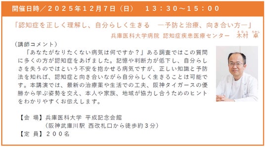 【12月7日(日)】認知症を正しく理解し、自分らしく生きる―予防と治療、向き合い方―