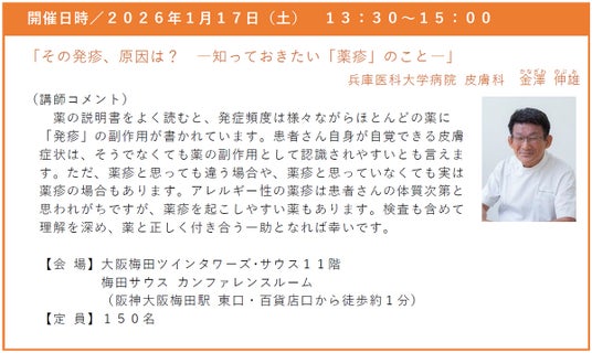 【1月17日(土)】その発疹、原因は?―知っておきたい「薬疹」のこと―