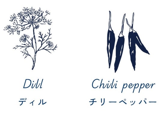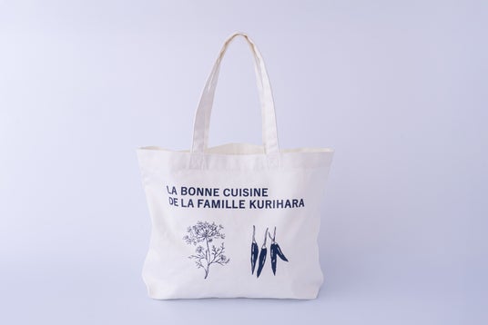 トートバッグにデザインされているスパイスとハーブは、ディルとチリーペッパーです。フランス語で「栗原さんちのおいしいごはん」のメッセージを付与し、シーンを選ばず、誰でも使いやすいデザインに仕上げました。