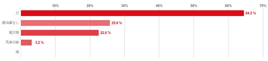 そのほか、「祖父母」(22.6%)、「兄弟姉妹」(3.2%)という順になり、「母」と回答した人はいなかった。