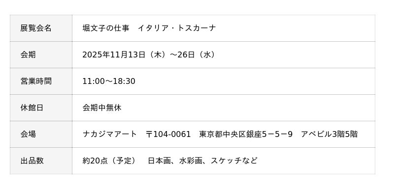 本展では、堀がイタリアで過ごした5年間に描いたスケッチや日本画を一堂に展示いたします。堀がトスカーナで描いた貴重な作品を、ぜひご高覧ください。