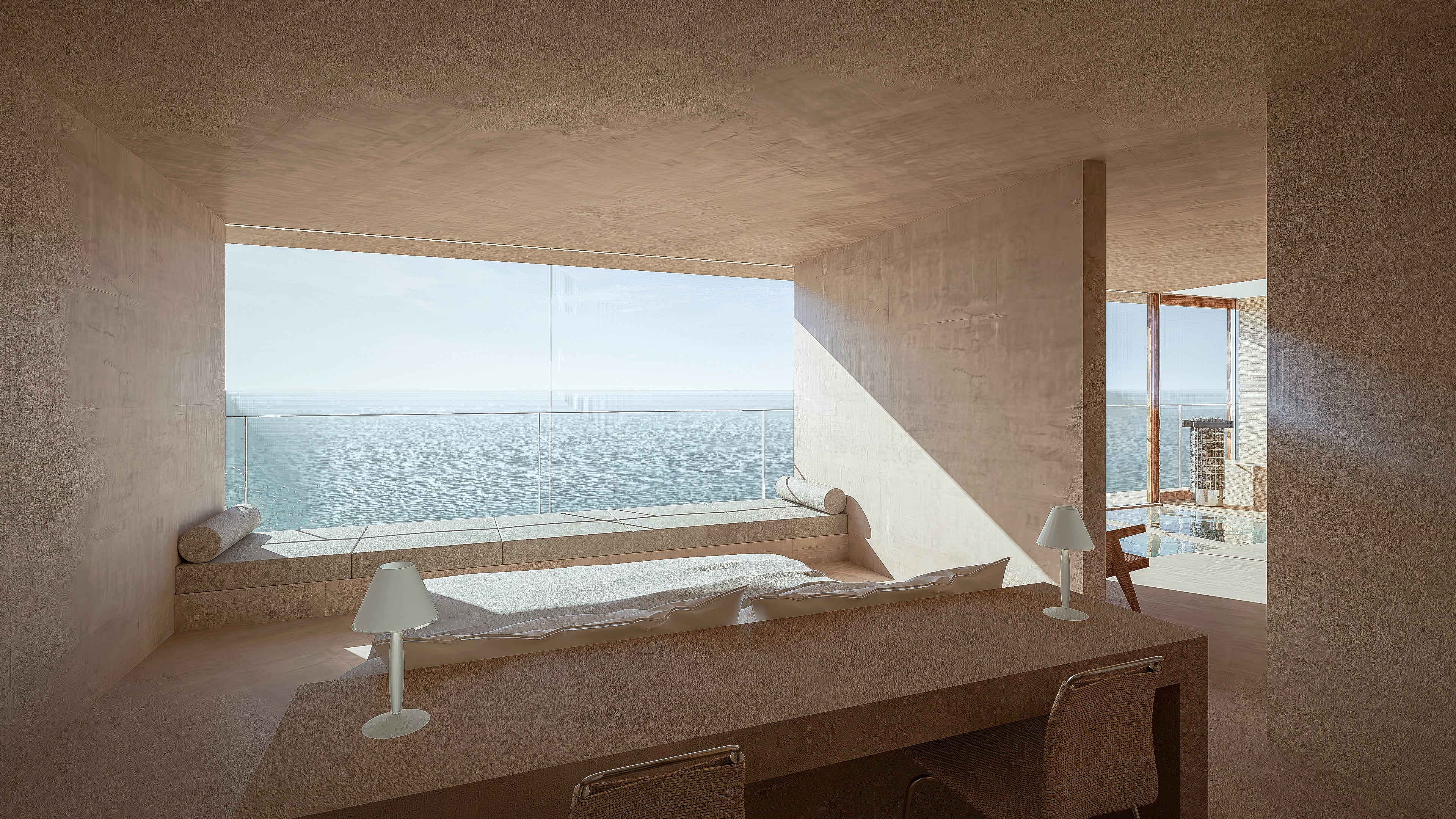 設計では、敷地の環境や自然の光、風、海沿いの景色を丁寧に読み取り、アプローチ全体の体験を空間に反映。明石海峡大橋を渡り、淡路島に足を踏み入れたその瞬間からホテル到着までの”旅路”を意識したシークエンス”を演出し、淡路島を訪れる全ての人にとって特別な時間と記憶が紡がれるよう思いを込めてデザインしています。