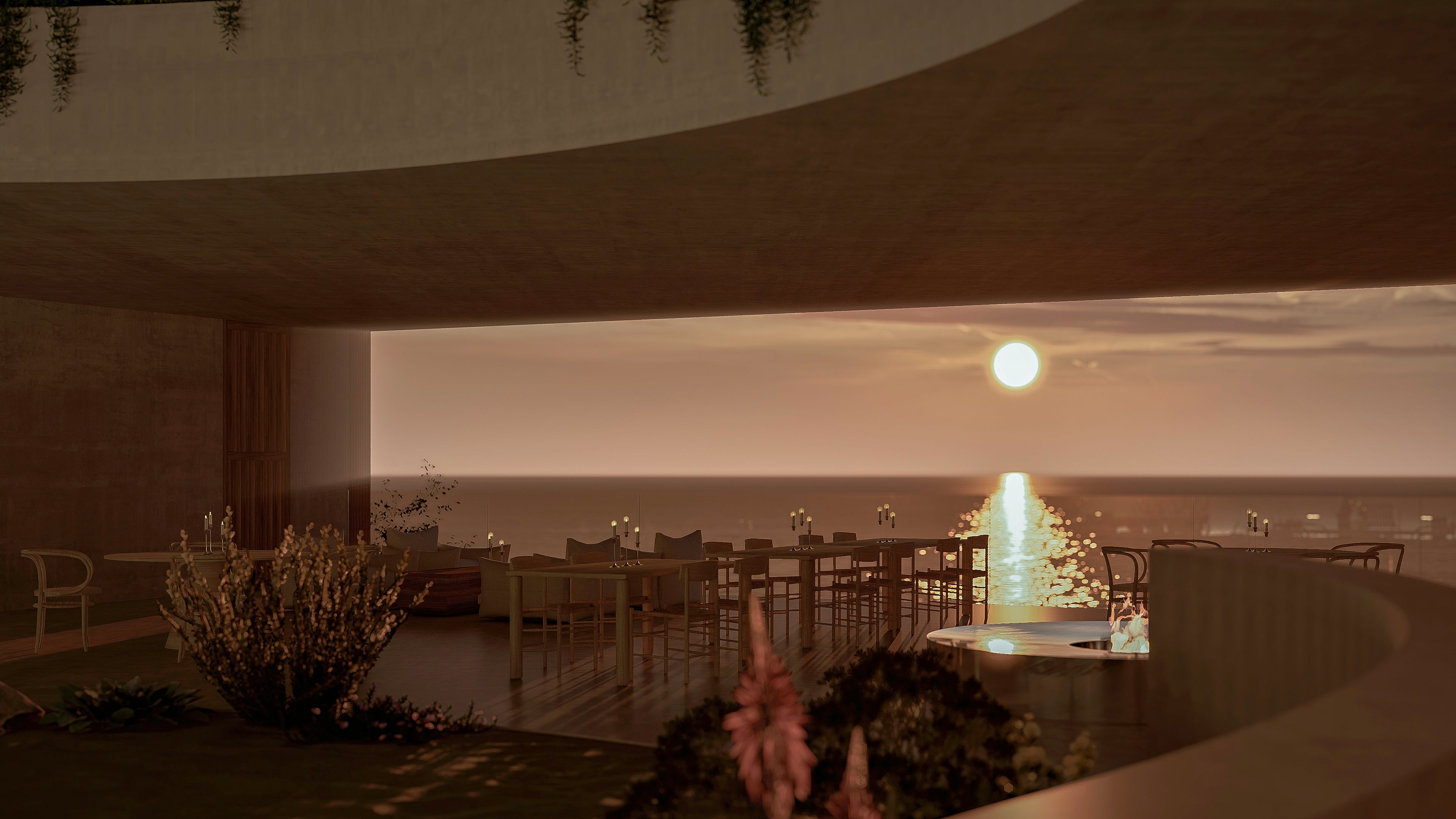 「UMITO 淡路島 オーシャンルーフ」の名称には、海に沈む夕日と屋根の円形開口を通じて自然との対話を生み出すという想いが込められています。屋根というモチーフから人々が集い、時間を超えた体験が紡がれる場となることを願い、この名が付けられました。