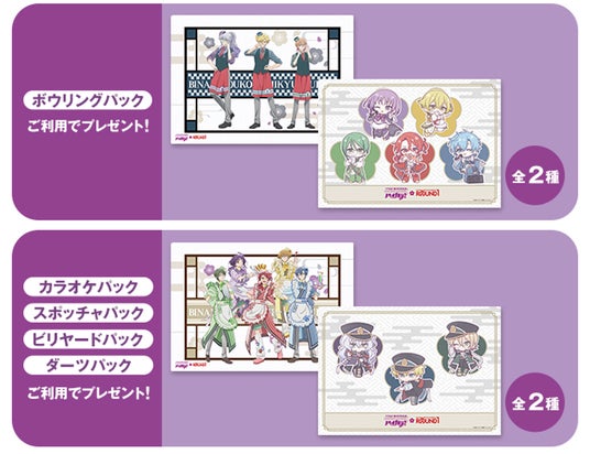 本キャンペーンでは、『ハイカラ浪漫団』と『蛮華羅新鋭隊』8キャラクターの新規描きおろしイラストが登場いたします。本キャンペーン限定イラストを使用してコラボグッズ、ノベルティ、プライズを展開するほか、各キャラクターをイメージしたドリンクやフードなどのコラボメニューを販売いたします。さらに、カラオケコラボルームやボウリングエキサイター演出映像など、様々な企画を実施いたします。
