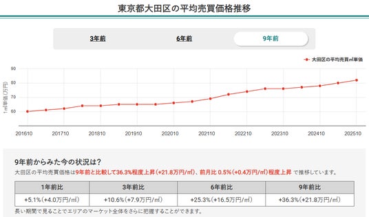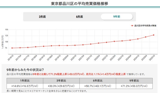 2.2025年10月時点での東京都全体のマンション価格は9年間で67.8%上昇し、安定した増加傾向