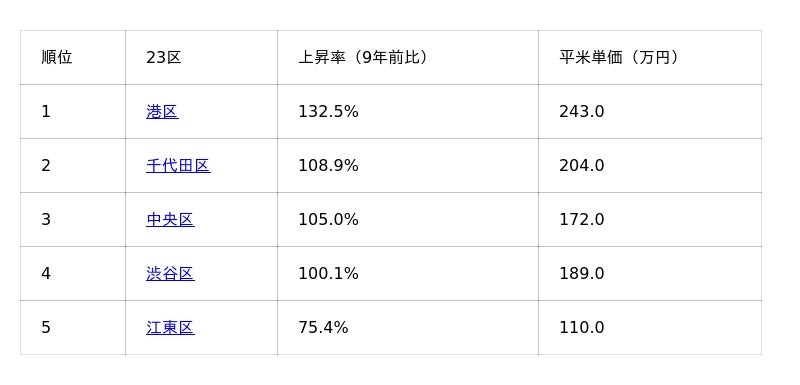 東京23区価格上昇率ランキング(2025年10月時点)