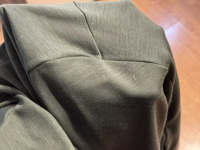 ウール23%程度で75%がポリエステルという配分でウール量はそれほど多くないのですが、肌触りの良さやテイストは間違いなくウールに近い感触。