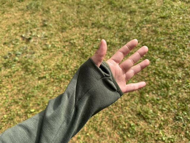 サムホールもついているので、手袋なしの状態で寒くなって困っても、なんとかなるところもいいですね!