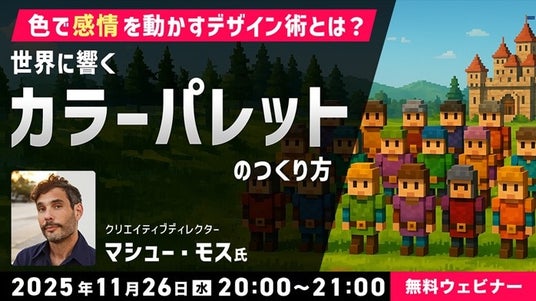 株式会社クリーク・アンド・リバー社(C&R社)は11月26日(水)、ゲーム業界に携わるクリエイターの方などを対象に、無料のオンラインセミナー「色で“感情”を動かすデザイン術とは? 世界に響くカラーパレットのつくり方」を開催します。なお、本セミナーは、全編英語で行いますが、同時通訳を通して日本語でお聞きいただくことも可能です。