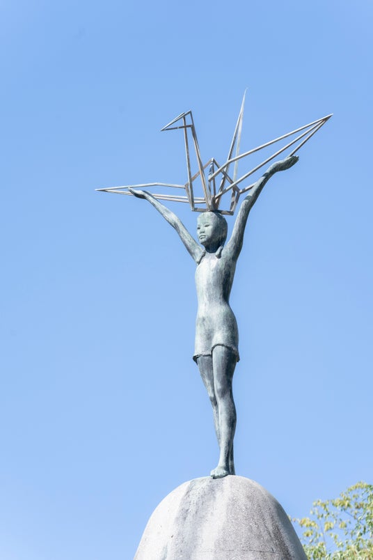 平和記念公園内ではいたる所で、色鮮やかな折り鶴が見受けられます。折り鶴は日本の伝統的な文化である折り紙の一つですが、今日では平和のシンボルと考えられ、多くの国々で平和を願って折られています。このように折り鶴が平和と結びつけて考えられるようになったのは、被爆から10年後に白血病で亡くなった少女、佐々木禎子さんが大きくかかわっています。