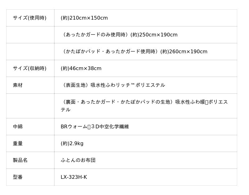一般の化繊布団よりも空気含有量が増え、抜群の保温力を実現します。