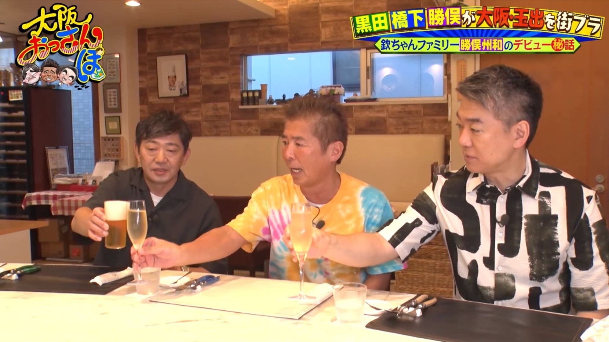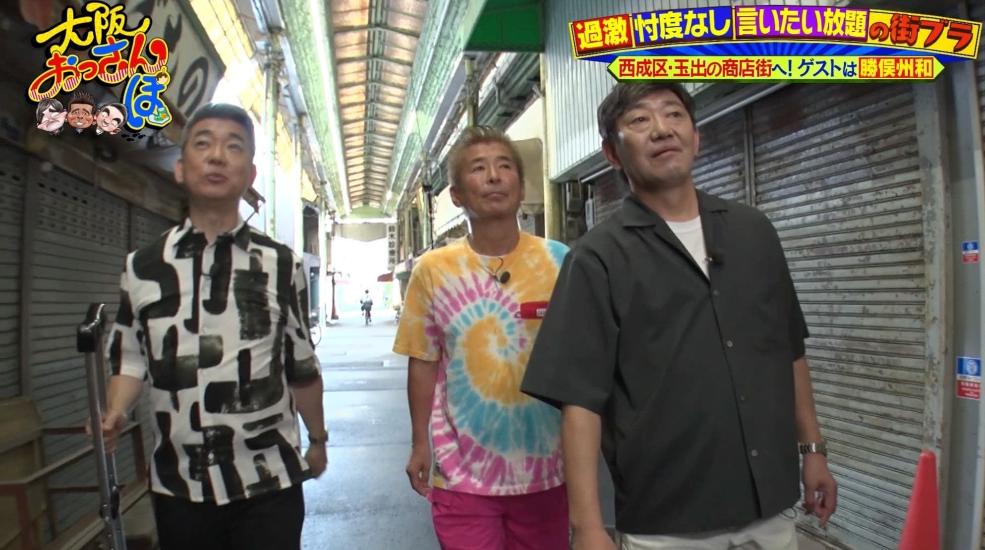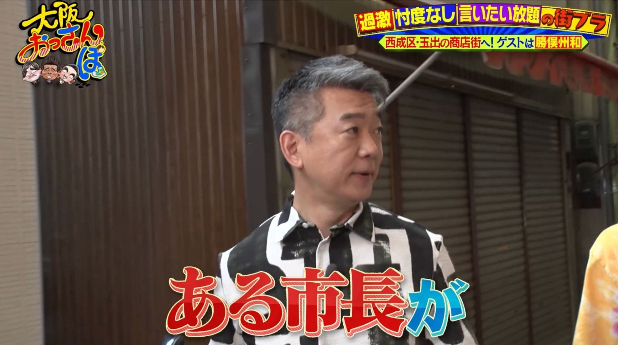 メッセ黒田と橋下徹、そして勝俣州和のおっさん3人は、まず商店街をおっさんぽ。まるで映画のセットのようなノスタルジックな雰囲気だが、橋下が言うには、現在、西成は土地価格が上昇中だという。