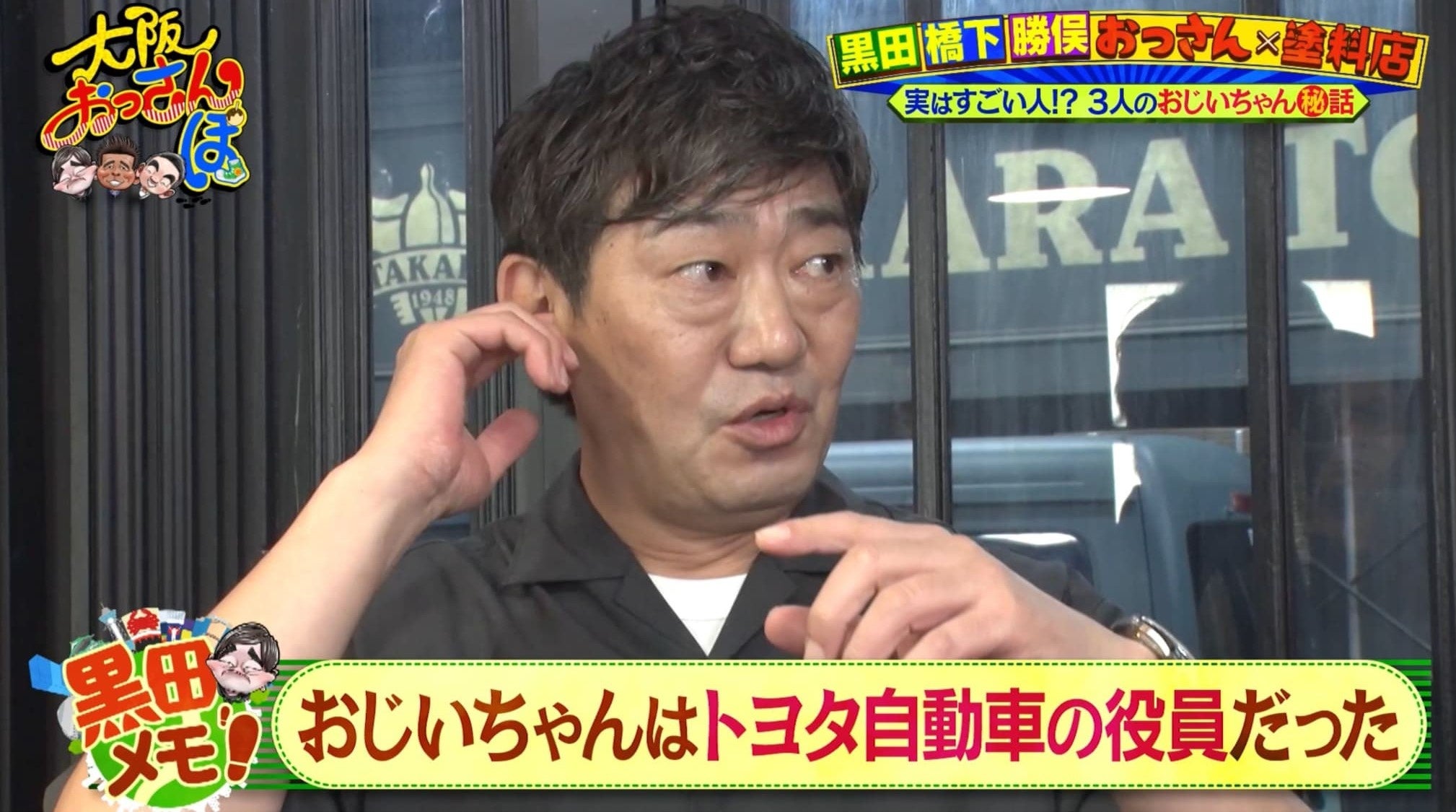 「タカラ塗料」は、代表の大野一馬さんの祖父が創業。黒田が「なぜ継ごうと思ったの?」と質問すると、祖父と孫の絆を感じる素敵なエピソードが明らかに。これを受けて、おっさん3人も自分たちのおじいちゃんの話に。