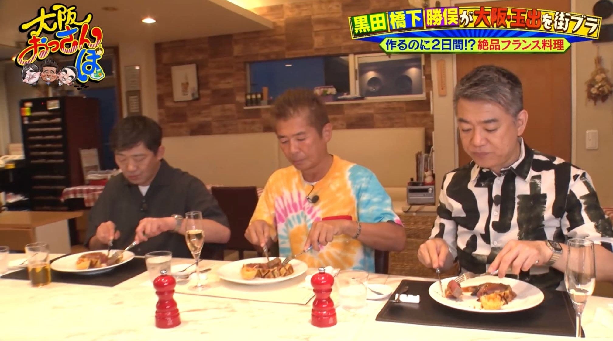 お待ちかねのスペシャリテは、フランスの伝統料理「牛フィレ肉のウェリントン」。絶品に舌鼓を打ちつつ、勝俣が慕う和田アキ子の話で盛り上がる。ある日の生放送で、和田の誕生日を祝うため、バンジージャンプ企画に挑戦した勝俣。しかし最後に「お前が飛べよ、バカヤロー!」と和田に本気でブチギレしたことを明かし……!