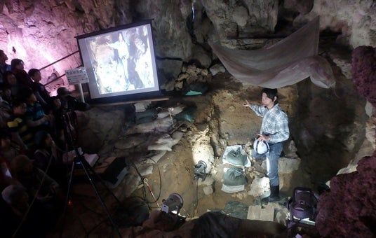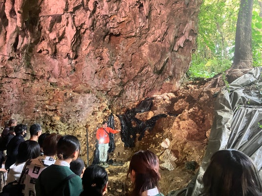 ― サキタリ洞人の文化を明らかにするため調査を進める発掘現場で専門の研究者が解説 ―