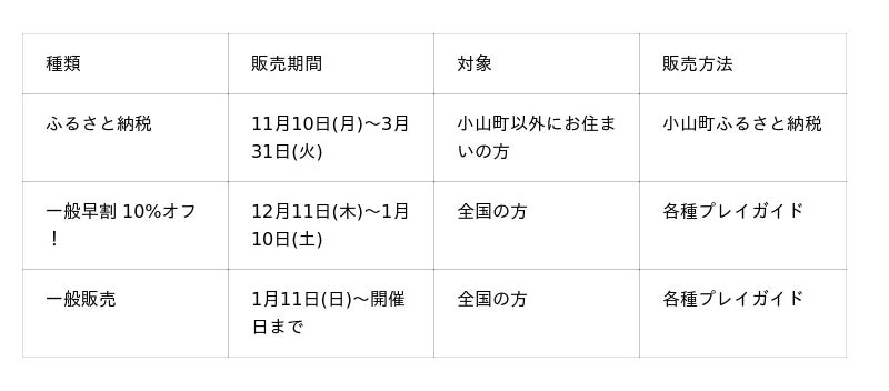 チケット発売スケジュール ~11月10日(月)より一部先行受付、12月11日(木)より全国早割販売開始!~