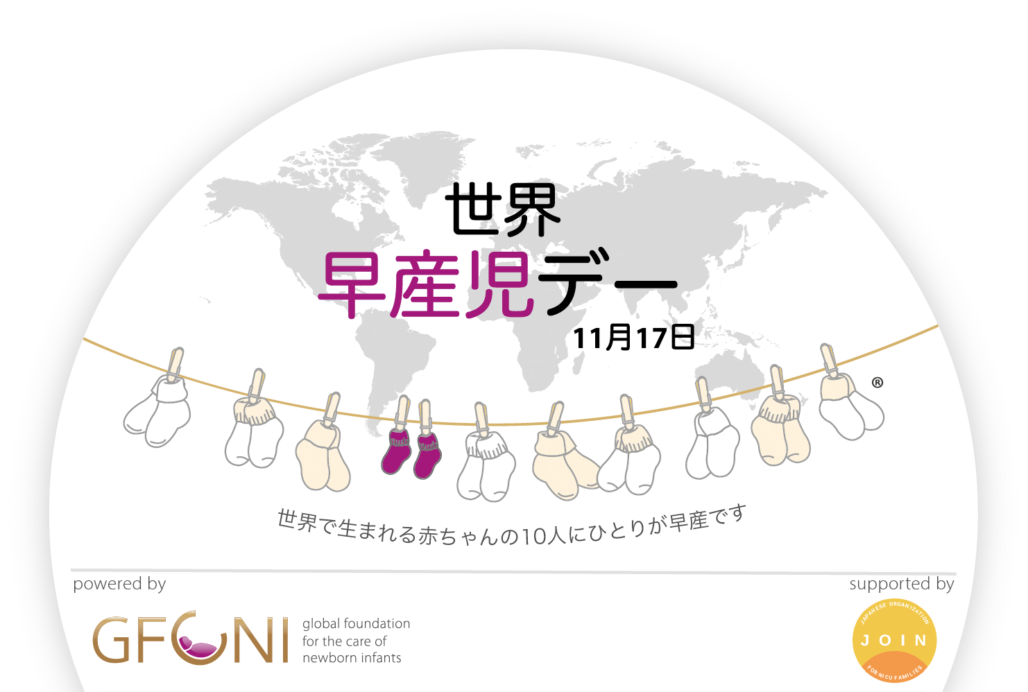 ■「世界早産児デー(World Prematurity Day)」とは11月17日の世界早産児デーは、ちいさく早く生まれた赤ちゃん、周産期医療を受けた赤ちゃんとご家族が抱える課題や負担に対する意識を高めるため、2008年にヨーロッパNICU家族会(EFCNI)(現世界NICU家族会(GFCNI))および提携している家族会によって制定された記念日です。
