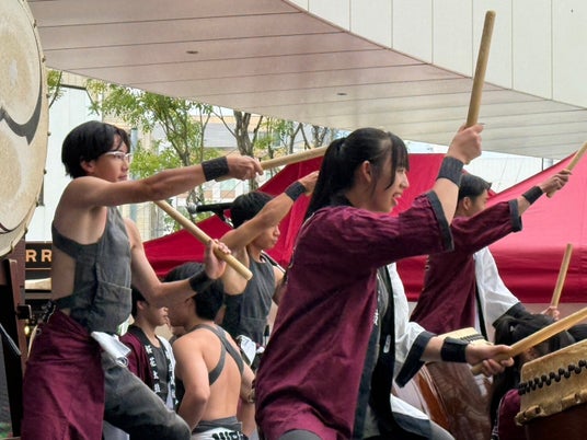 まちなか広場のステージイベントは、「大崎しおかぜ太鼓」の和太鼓演奏で幕開け。ウクライナの歌やインドネシアの民族舞踊などが続き、フィナーレをペルーのダンス「マリネラ」が飾ります。