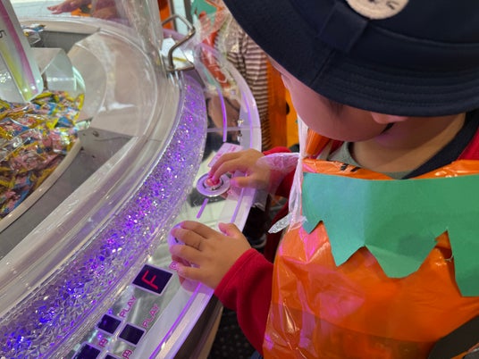 ▲特別にハロウィン仕様を施した「スウィートランド5」でプレイを楽しむ園児のみなさん