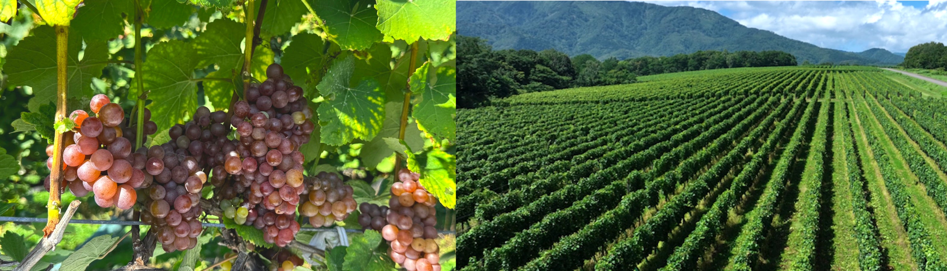 左:ゲヴュルツトラミネール 右:北海道ワイン(株)直轄農場 鶴沼ワイナリー(北海道浦臼町)