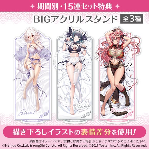 今回は15連セット特典として、「描き下ろしアクリルスタンド」の表情違いをもれなくプレゼントいたします。