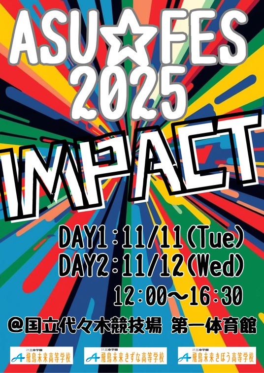学校法人三幸学園(所在地:東京都文京区)が運営する通信制高校、飛鳥未来高校グループ(※1)の3校14キャンパスは、2025年11月11日(火)・12日(水)の2日間にわたり、国立代々木競技場第一体育館にて、首都圏合同体育祭「ASU☆FES(アスフェス)2025」を開催いたします。
