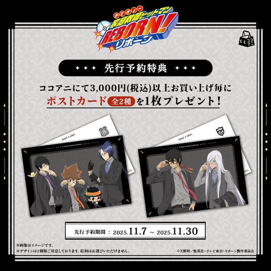 ECサイト「ココアニ」にて、先行予約期間中に対象商品を1会計3,000円(税込)以上お買い上げごとに、「ポストカード(全2種)」をランダムで1枚プレゼントいたします。