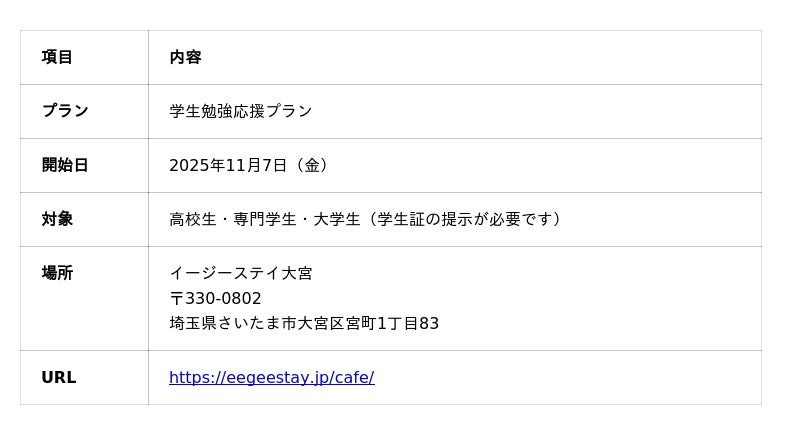 eeGeeSTAY(イージーステイ)は、2025年11月7日(金)より、大学受験をする高校生や試験勉強をする大学生・専門学生に向けて、「安く」「快適に」勉強できる特別プランをスタートします。