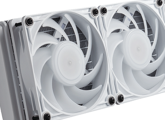 - ラジエーターのファンには耐久性と静穏性に優れたFDB流体動圧軸受120mmファンを採用。
