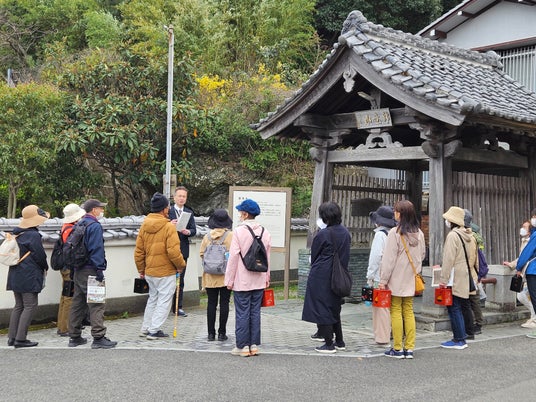 季節の和菓子を詰めた遊山箱と「お城・寺町まち歩きマップ」を手に持って、史蹟と寺社を巡ります。