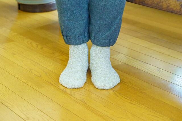 このソックスはふわもこ生地で肌に優しく、柔らかい履き心地もおすすめポイント。