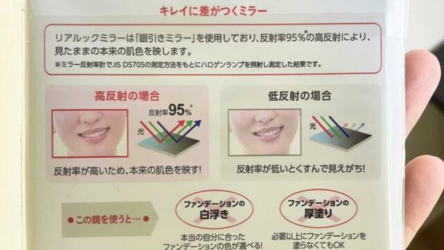 あくまでも個人的な感想ですが、体感150%鮮明に見えるので、ベースメイクをさっとすべらせるだけで「塗れてるな」と目視できるようになり、不安で塗り重ねることで不要に厚塗りになる、ということがなくなりました。もちろん塗り残しもなし。